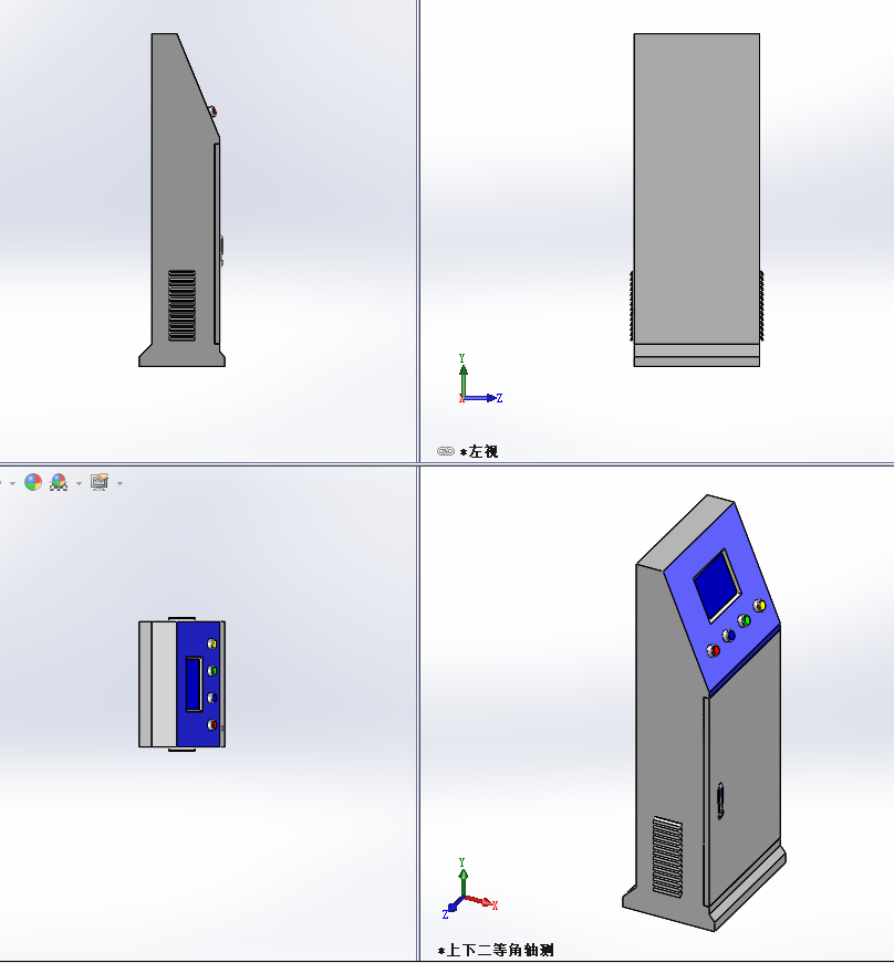 - 控制箱尺寸1300×500×340。控制箱有下部開(kāi)門,門配鎖,上部有按鈕和顯示屏。是自動(dòng)化控制產(chǎn)線中必備可少的部分。...