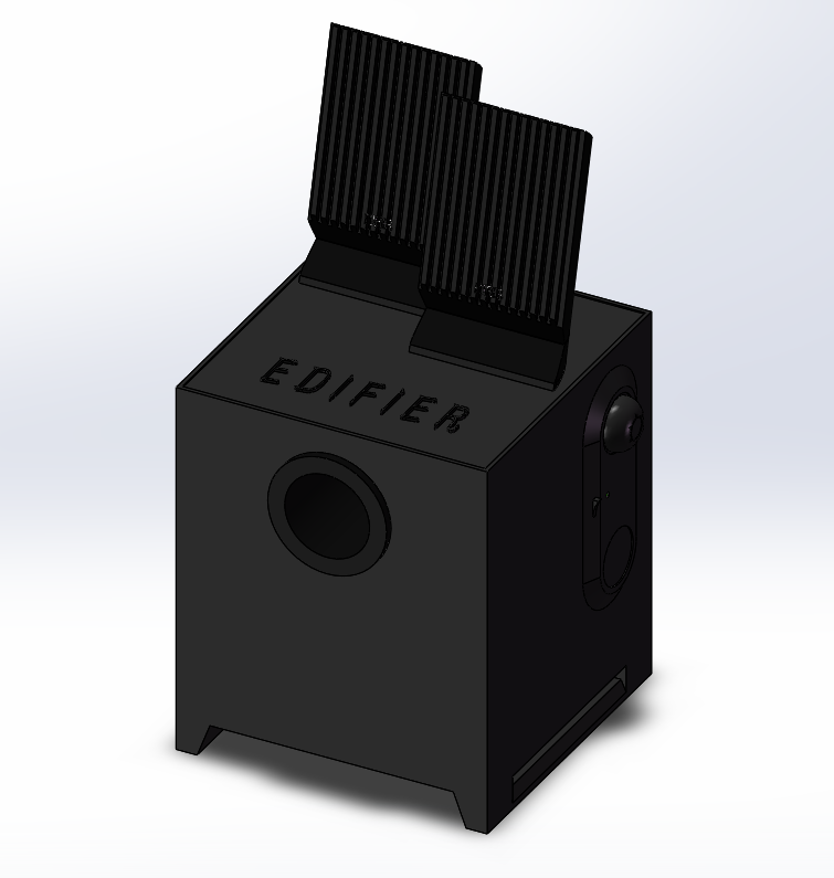 - 此音箱由音箱主體,小音箱,和低音炮組成,整個設計相對簡單,應用到拉伸,放樣等特征,其中繪制小音箱時要注意基準面的選擇,最終渲染完成....