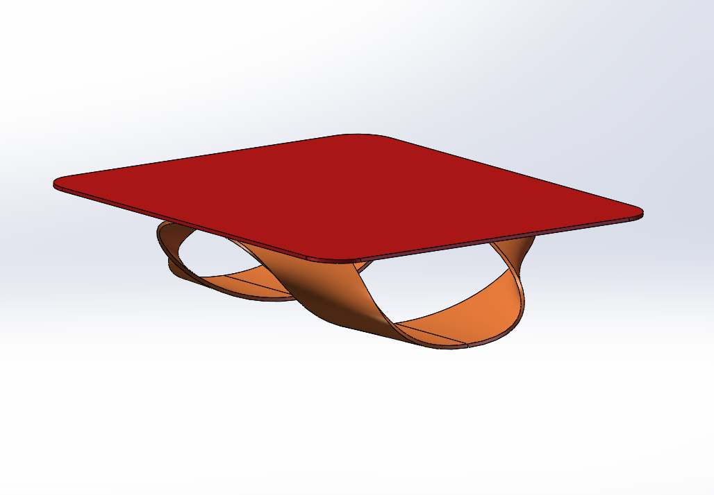- 本圖檔為根據曲美公司的宣傳海報進行建模的曲美概念烏比斯環創意桌子的產品,產品分為兩部分一部分為桌子的支撐,是一個木材質地的完整連續的曲面。...