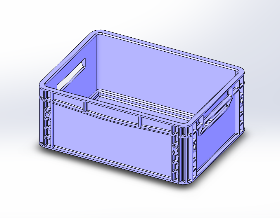 - 本模型為塑料箱,其外形尺寸長×寬×高為40 × 30 × 17厘米,內部尺寸長×寬×高37×27×16.5厘米內部空間的可用高度14.3厘米,在塑料箱的外圍有很多加固筋,兩邊有扣手,方便搬運。