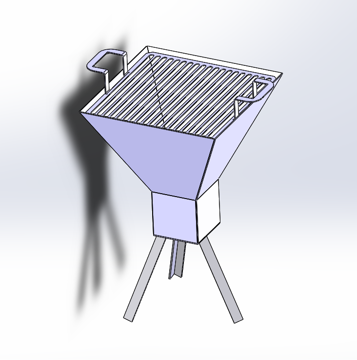 - 這個模型是燒烤架子三維模型,它被設計成了一個方形的喇叭口形,可以用來烤串和烤肉使用,架子里面可以放炭。
