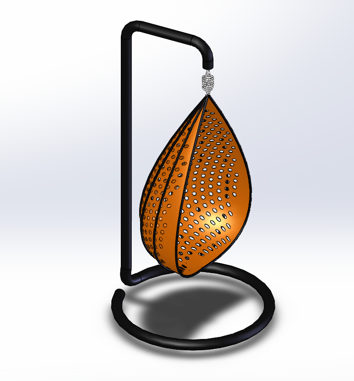 - 這個模型為吊椅三維模型,它是把果核形的鏤空椅子安裝在了一個彎曲的鋼管上,這樣可以將重心穩穩地落在下方煨彎的鋼管中心了。
