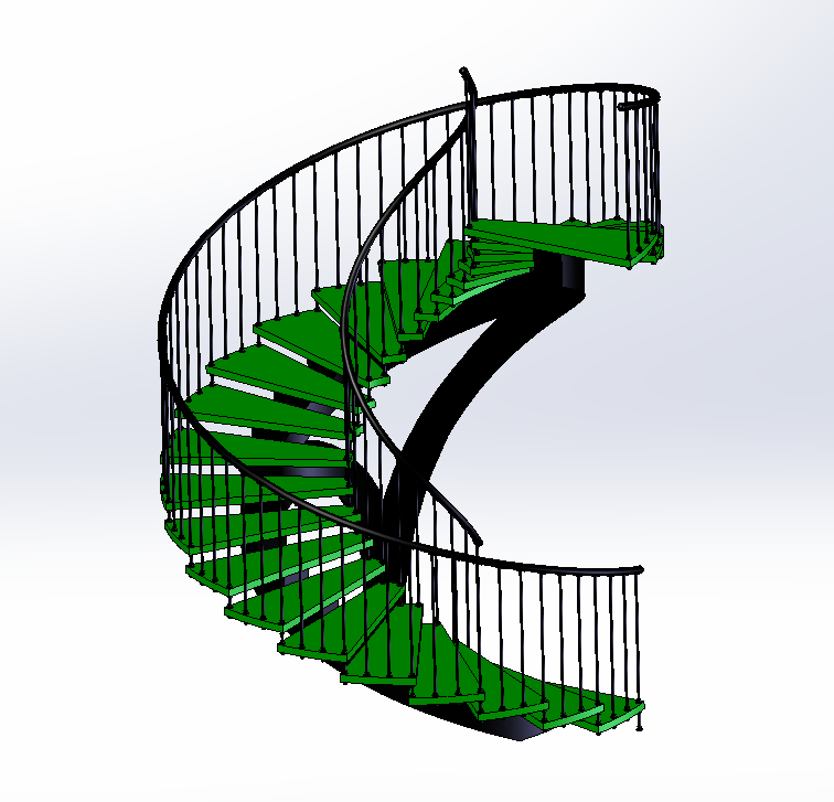 - 本模型為螺旋樓梯三維模型,這個螺旋樓梯并沒有在中間設置一根豎直的柱子,而是采用了不同段的柱子來承壓不同高度的樓梯的方式。