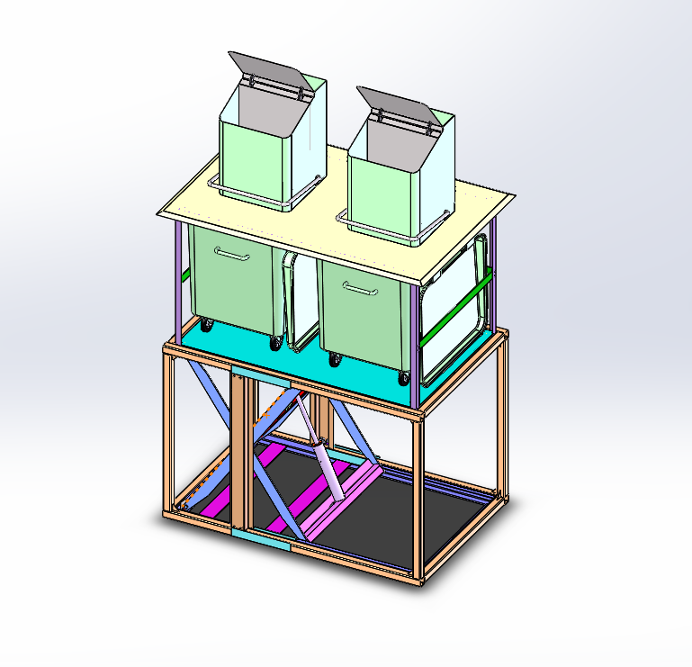 - 本模型為地下垃圾箱三維模型,它把垃圾箱分為了上下兩個部分,上部分是伸出地面的垃圾投入通道,下部分是存儲垃圾的容器,將它們整體放在了一個液壓的架子上。